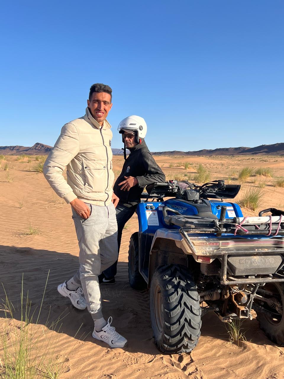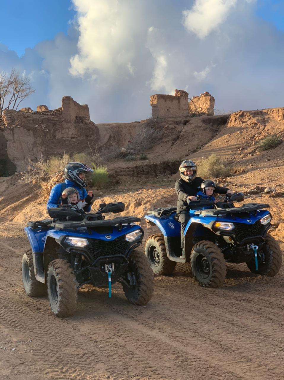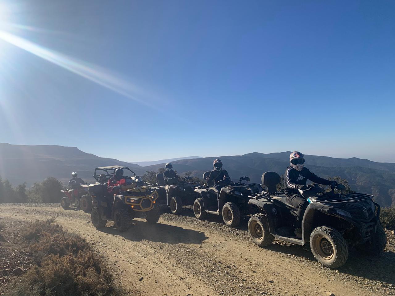 Raid de 5 jour extraordinaire "Prise en charge privé sur Marrakech, un quad CFmoto extra et adapté, j’ai été pris en charge par Hicham qui a géré le raid de 5 jours dans l’Atlas à la perfection. Entre déjeuner chez l’habitant avec des plats marocains succulents, nuitée dans des auberges de charmes, une nuit à 2000 mètres sans aucune autres habitations et tenu par un guide de montagne très compétent, des paysages à couper le souffle, villages berbères totalement isolés avec un accueil toujours chaleureux, pour finir sous un bivouac dans le désert d’agafay. Séjour Parfait, allez-y les yeux fermés et surtout laisser gérer Hicham pour le circuit, il connaît la montagne et le désert comme sa poche."